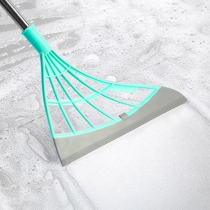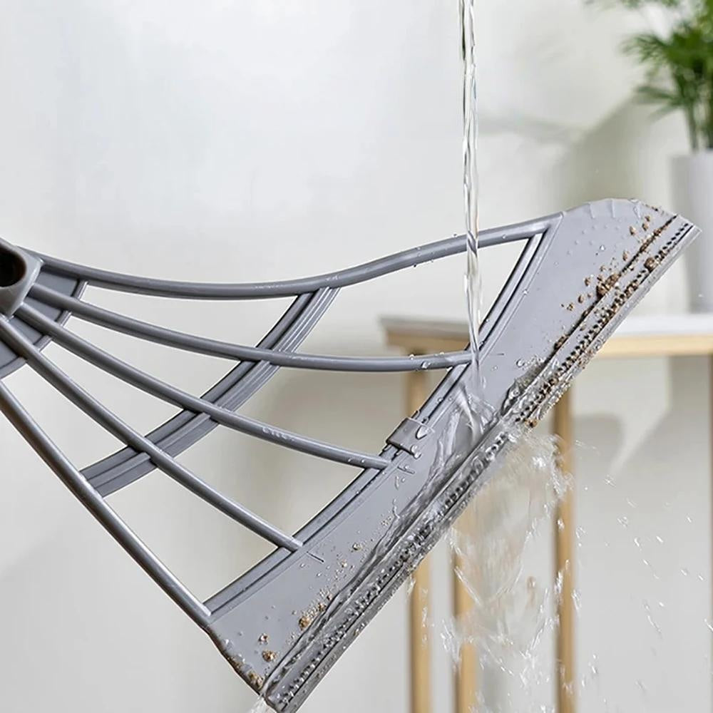 Balai magique en silicone 2-en-1, essuie-glace et ramasse-poussière, élimine l’eau, la mousse, les poils et poussières sans traces ni enchevêtrement, matériau résistant et facile à laver, idéal sols, vitres et salle de bain. Livraison offerte !