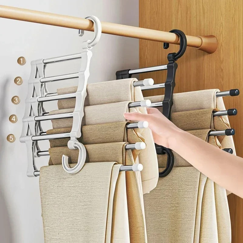 Chaque cintre peut accueillir 5 pantalons. Il peut être déplié ou plié arbitrairement pour conserver votre placard bien rangé.
