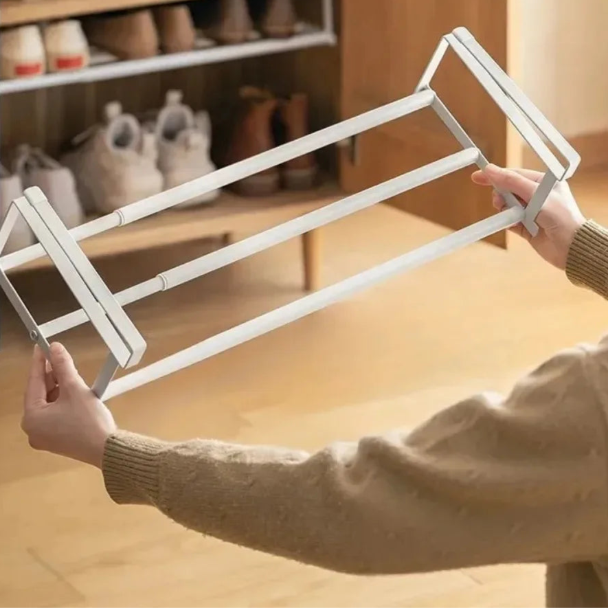 Fixée sous une étagère, elle utilise intelligemment l’espace inutilisé et offre un rangement supplémentaire sans nécessiter d’outils ni de perçage. Sa conception compacte permet de garder vos chaussures parfaitement organisées, tout en libérant de la place au sol.