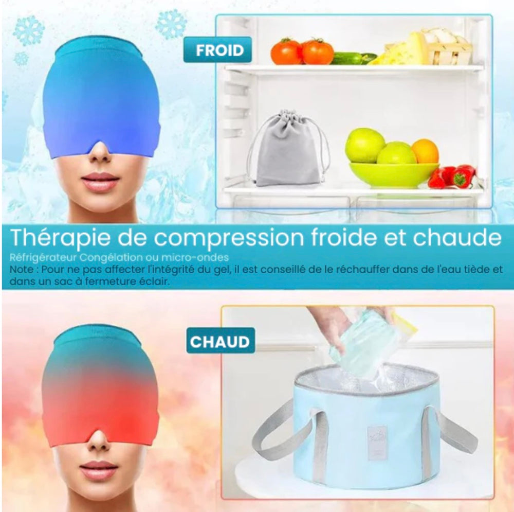 Ingénieux bonnet en gel, soulage les maux de tête, apaise les sinus, réduit les yeux boursouflés, calme le stress – Thérapie froide ou chaude – Réutilisable et flexible – Taille unique. Livraison prioritaire offerte !